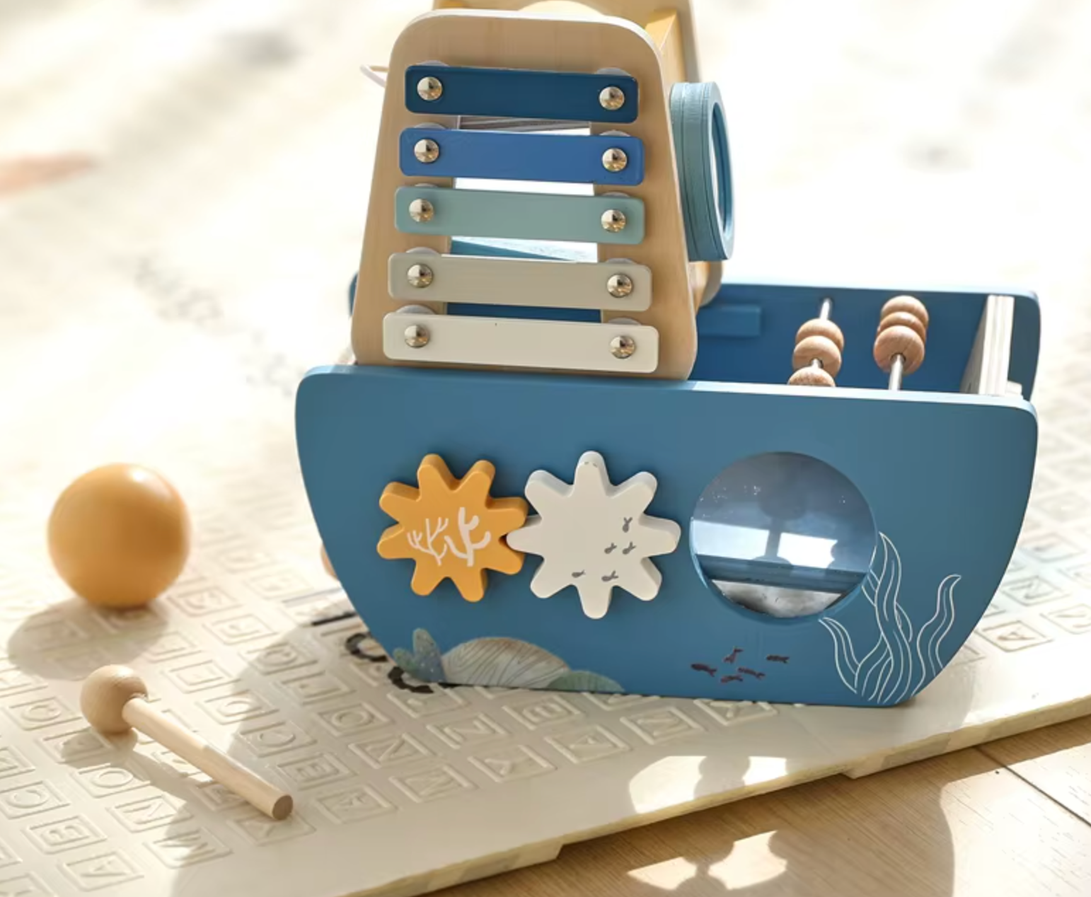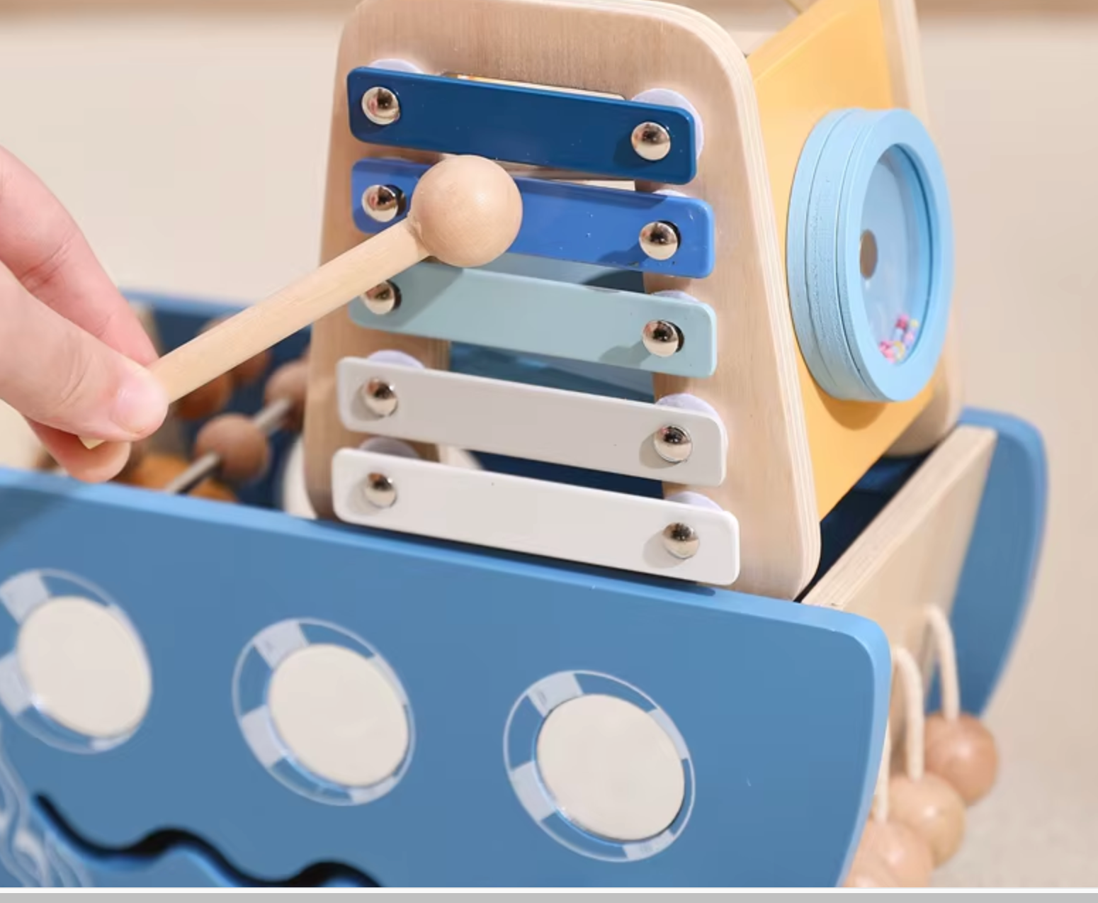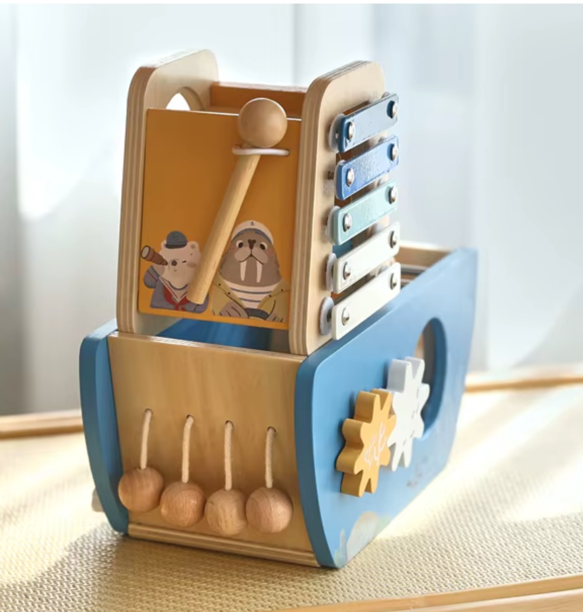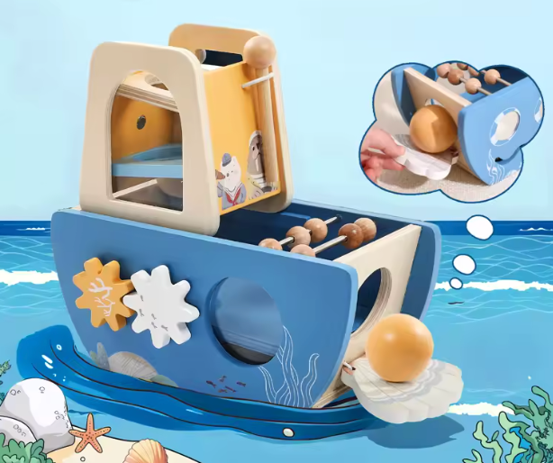 Juguete para la habitación de los niños de educación temprana Montessori, rompecabezas multifuncional para bebés y niños, forma de apilamiento de barco.