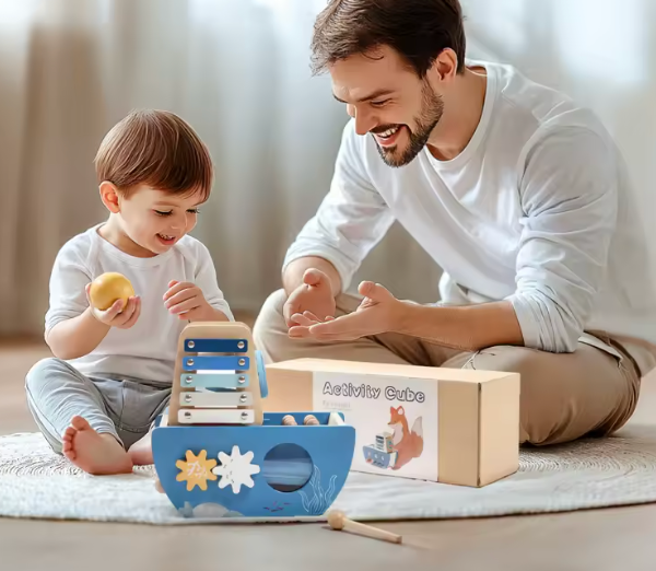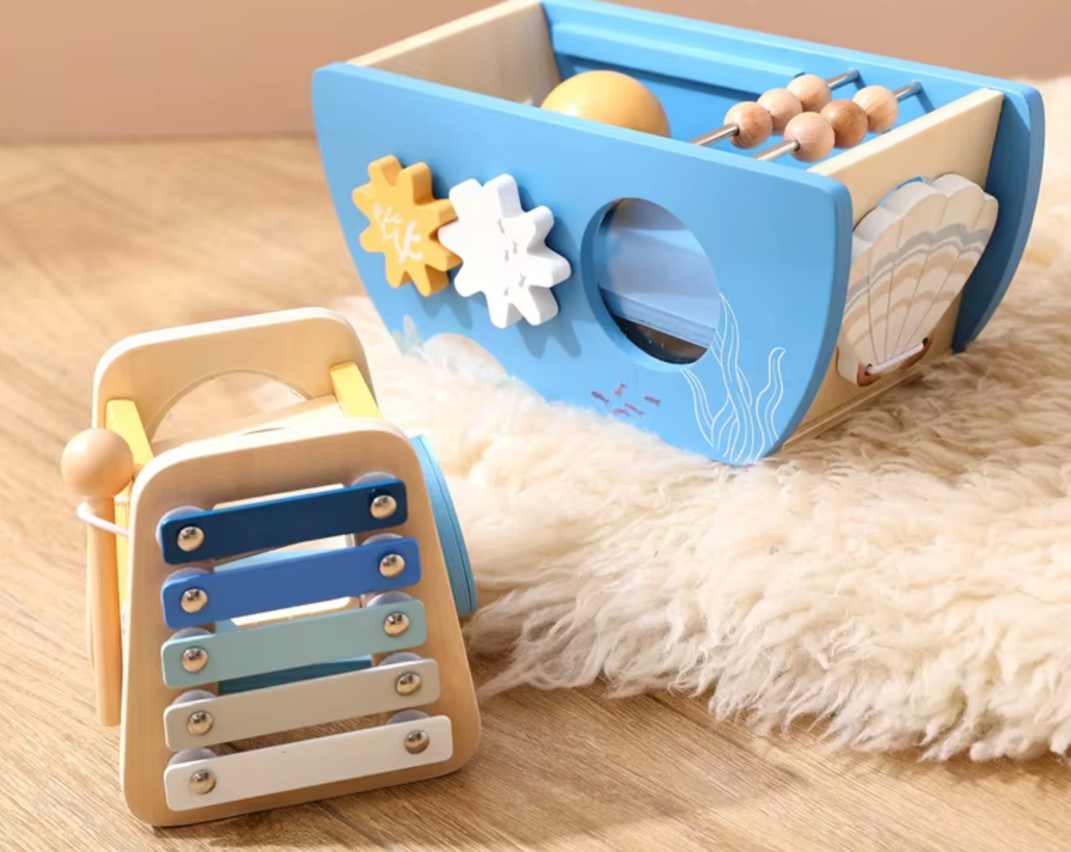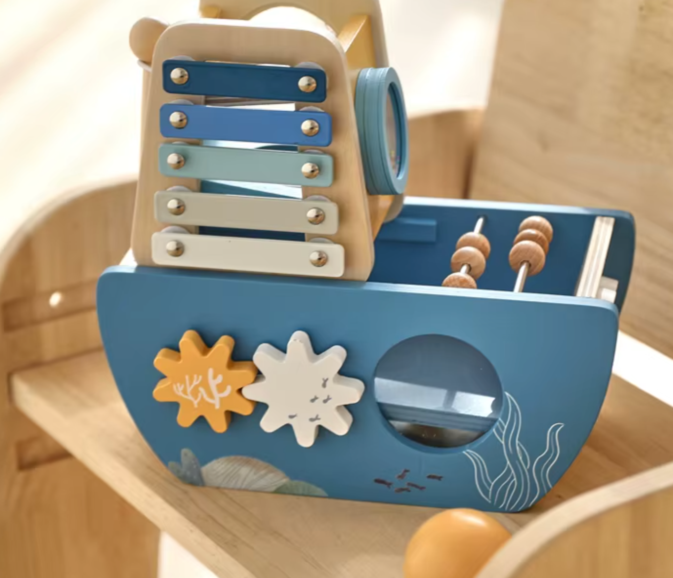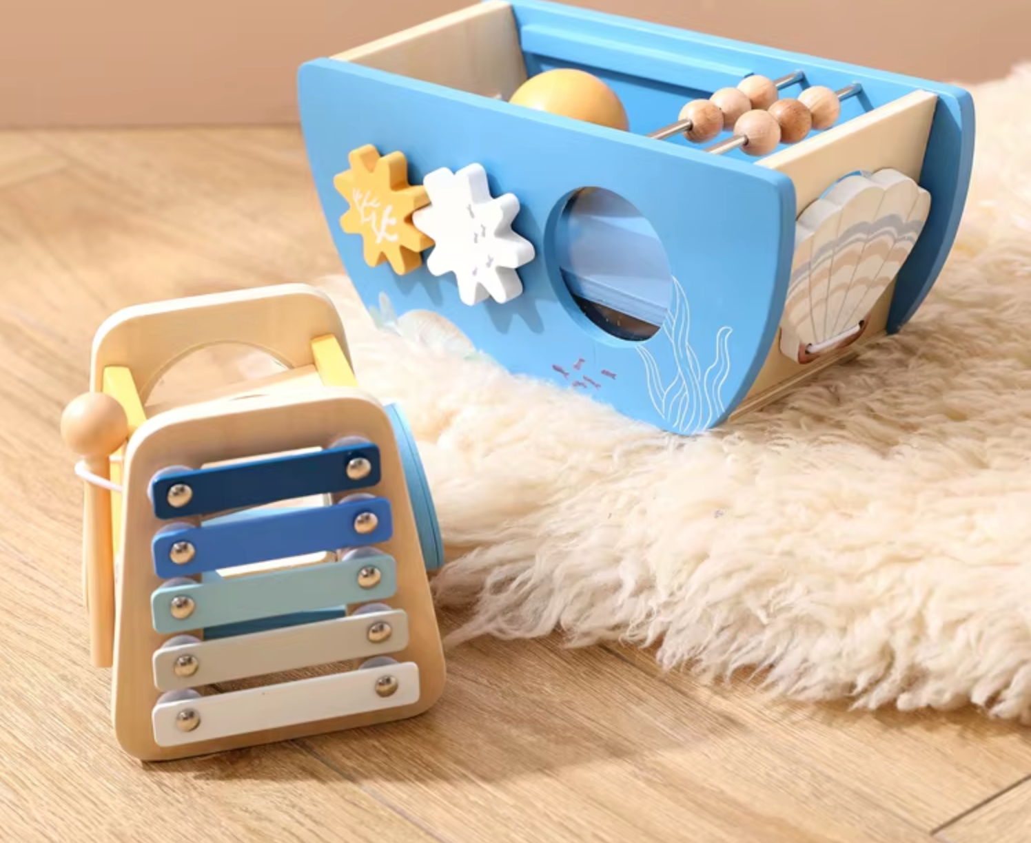 Juguete para la habitación de los niños de educación temprana Montessori, rompecabezas multifuncional para bebés y niños, forma de apilamiento de barco.