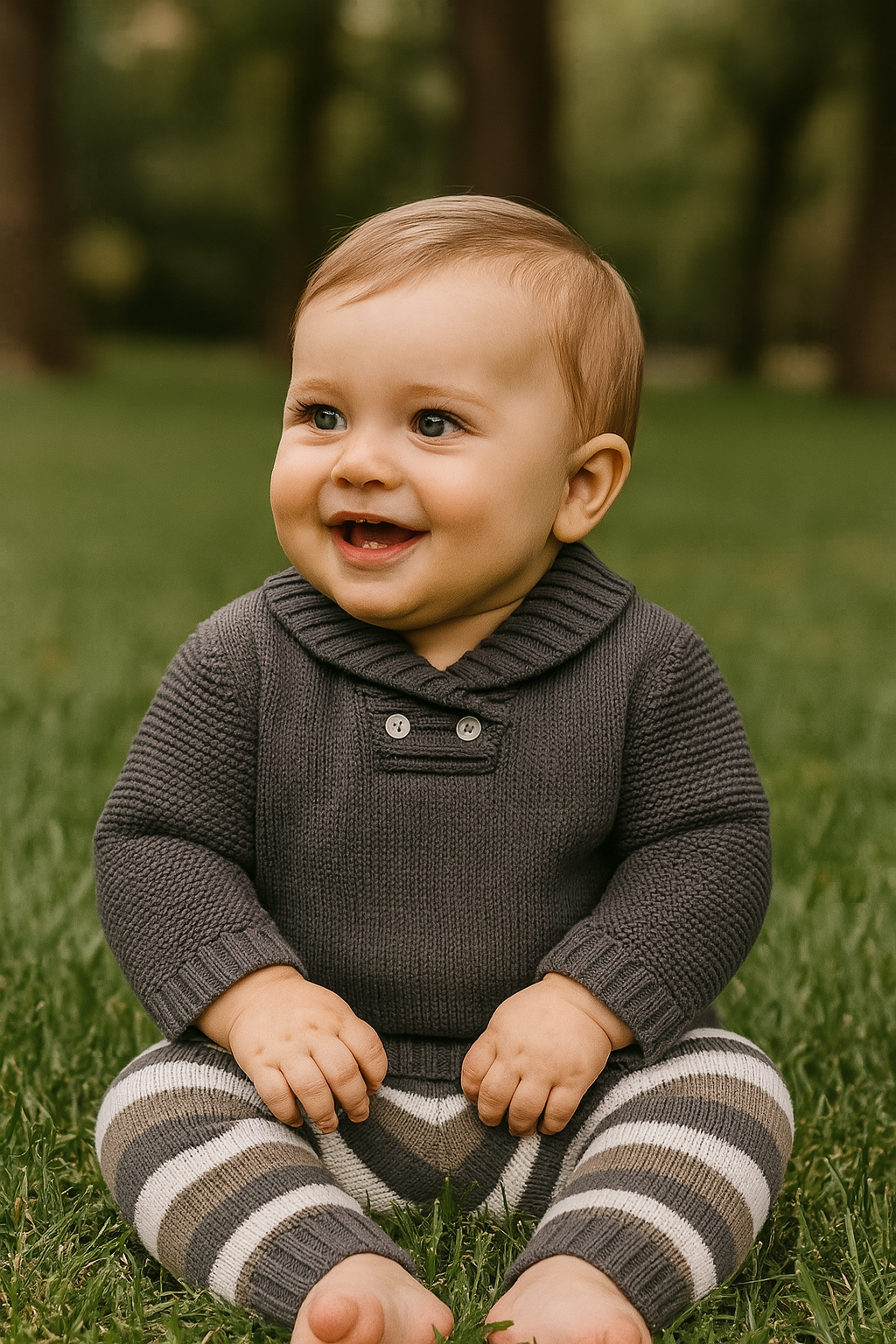 Conjunto informal de suéter liso y pantalones a rayas para bebé niño en otoño/invierno