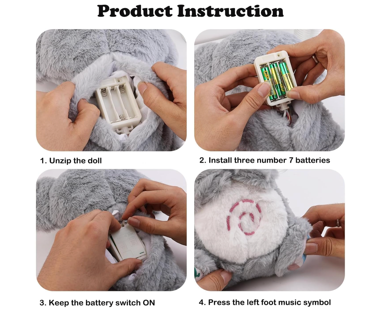 - Fácil de usar: Después de instalar la batería (las baterías no están incluidas), mantenga el interruptor de la batería en la parte posterior en el estado de "ENCENDIDO" (no lo mantenga en el estado "APAGADO"), presione los símbolos musicales en su pie izquierdo y escuche la tranquila melodía.