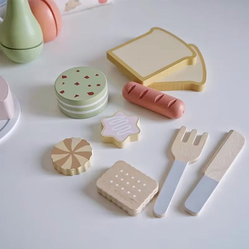Juego de simulación de madera para niños, bolsa de paquete de pastel de Picnic, juguetes de comida de cocina para niñas, juego educativo de imitación para niños, fiesta