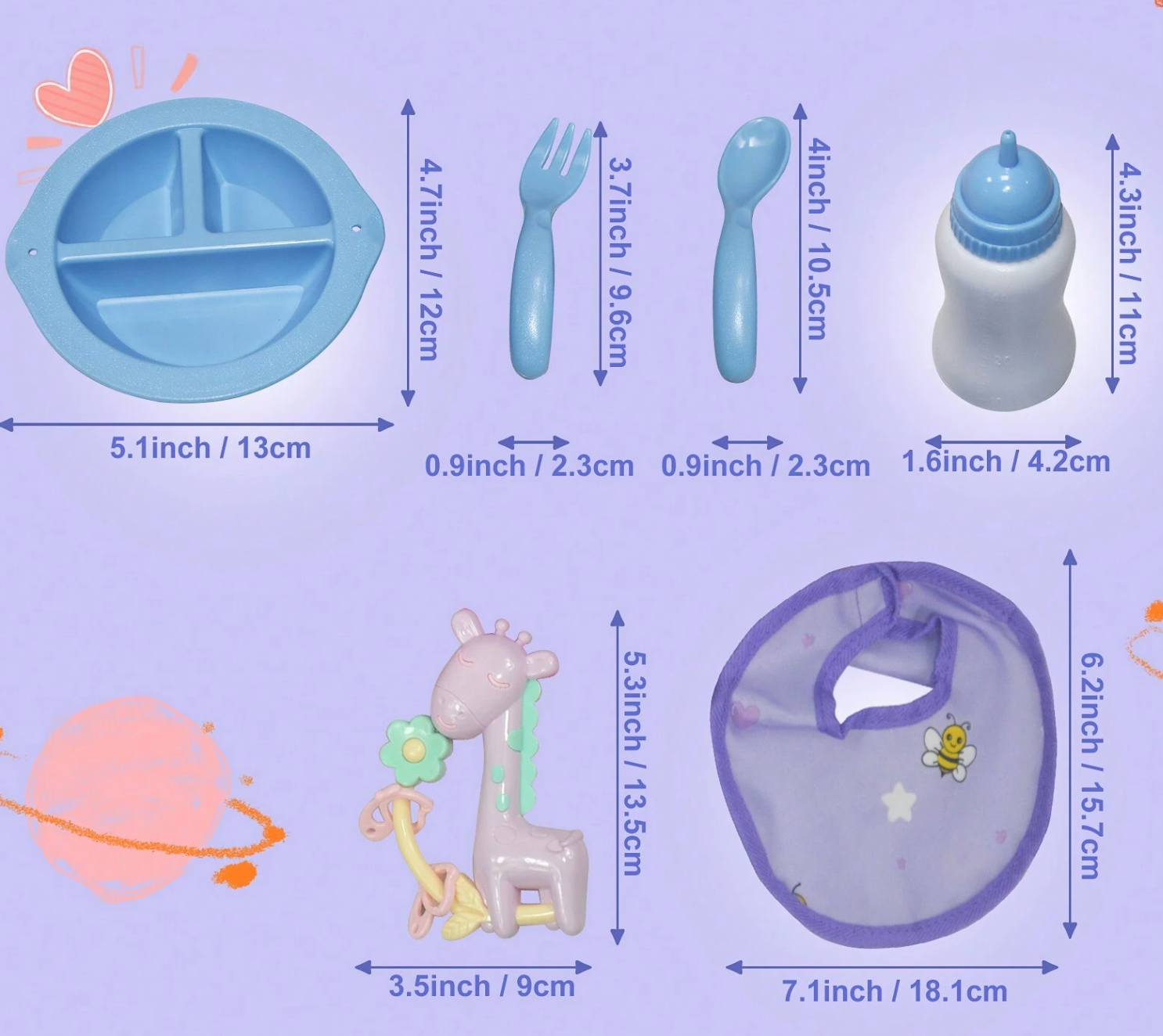 Set de accesorios para muñeca bebé, que incluye bolsa de dormir con muñeca de 18 pulgadas, set de 10 piezas para alimentar a la muñeca, juguete de juego de roles perfecto como regalo imaginativo para niños pequeños y niñas