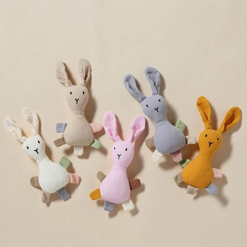 Sonajero de conejo de peluche para bebé, juguete de seguridad de algodón para calmar y acurrucarse, kawaii, recién nacido, novedad