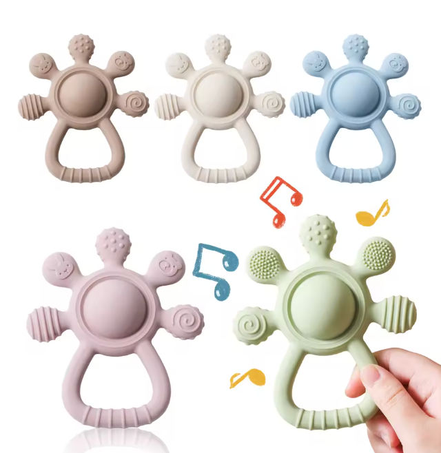 Mordedor de silicona para bebé, de mano de oso, juguetes mordedores de calidad alimentaria, sonajero para bebé de 0 a 12 meses, juguetes sensoriales de silicona, juguete para la dentición.