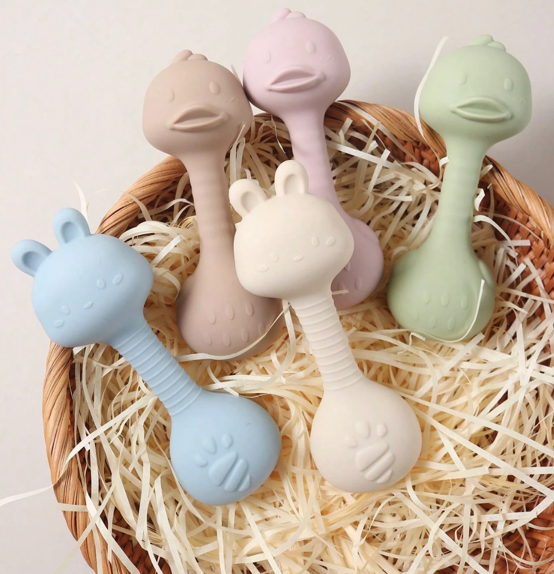 Mordedor de silicona para bebé, de mano de oso, juguetes mordedores de calidad alimentaria, sonajero para bebé de 0 a 12 meses, juguetes sensoriales de silicona, juguete para la dentición.