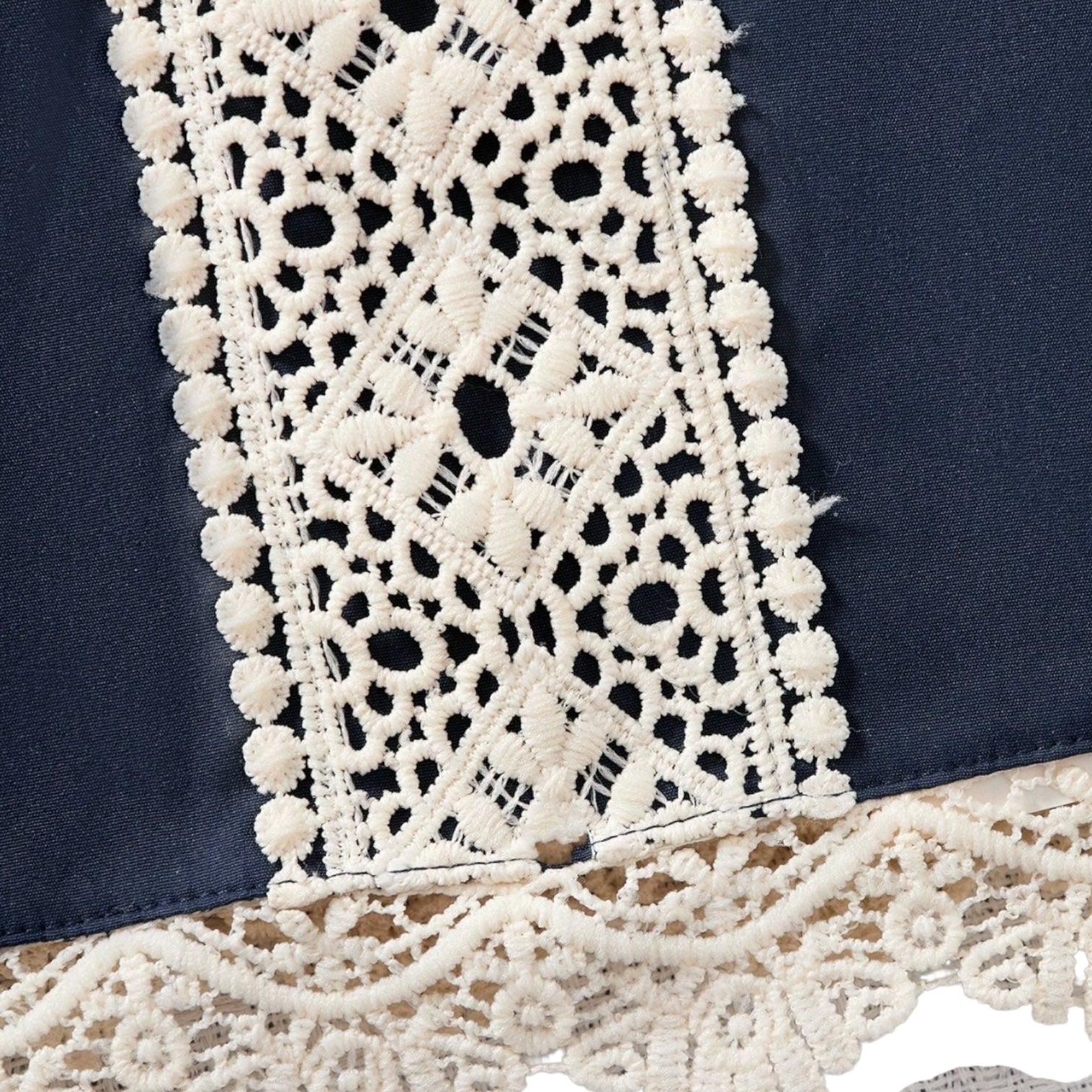 Acabado inferior con puntilla de encaje: Aporta textura y movimiento al vestido.